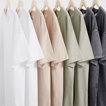 Precio de fábrica 300gsm camisa de manga corta de algodón pesado Color sólido hombres mujeres pareja suelta moda camiseta de gran tamaño
